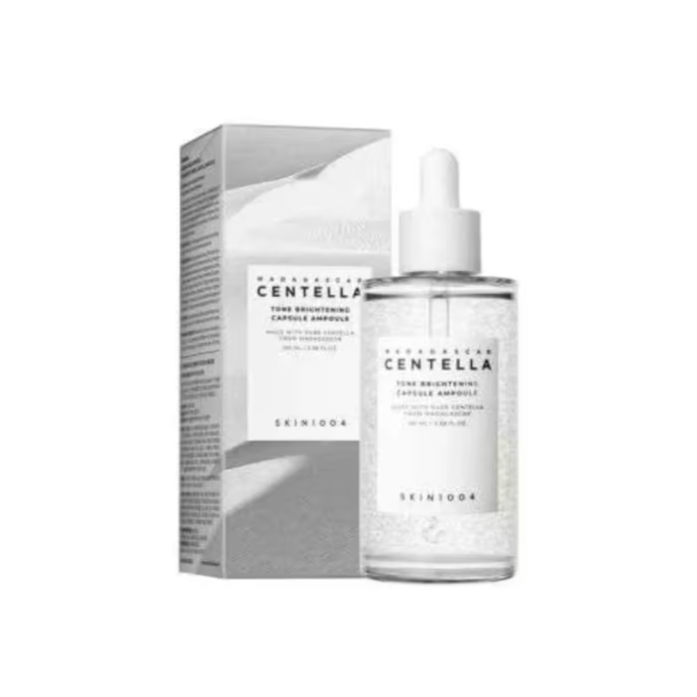 CENTELLA TONE BRIGHTENING CAPSULE Illuminez votre teint et retrouvez une peau éclatante avec la SKIN1004 Madagascar Centella Tone Brightening Capsule Ampoule 100ml, un soin intensif conçu pour unifier, hydrater et revitaliser les peaux ternes. Cette ampoule hautement concentrée agit en profondeur pour éclaircir le teint, réduire les taches pigmentaires et améliorer la texture globale de la peau, tout en respectant les peaux sensibles.