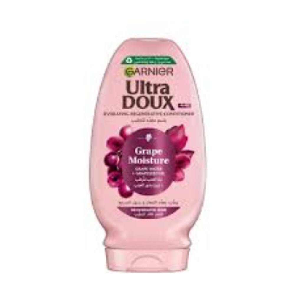 Adoptez le Garnier Ultra Doux Grape Moisture Conditioner 200ml pour des cheveux nourris, démêlés et éclatants de santé, et profitez d’une chevelure douce, souple et revitalisée au quotidien. 🍇✨